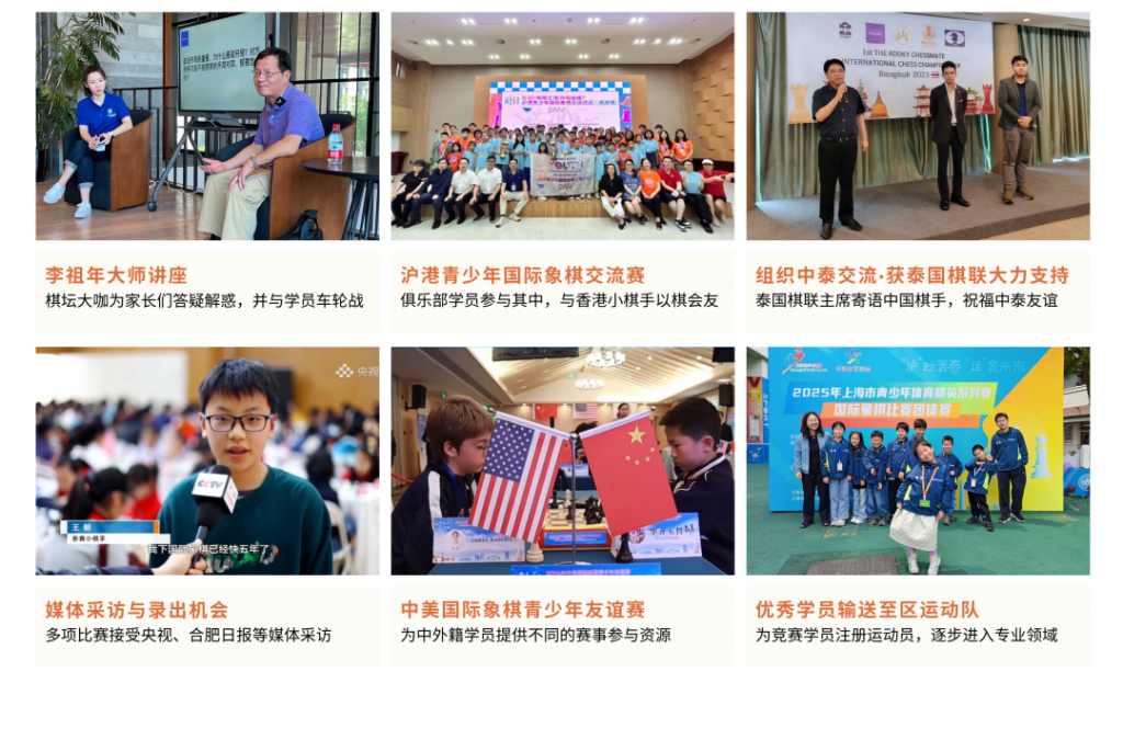 俱乐部与多所知名外籍学校、双语国际学校建立战略合作,提供专业的国际象棋训练。细分“兴趣路线”与“竞赛路线”双轨培养体系,规划匹配不同需求的个性化成长线。