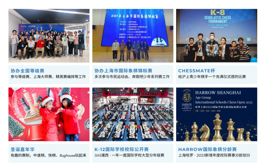 Chessmate是一家文化多元融合的国际象棋俱乐部,学员中外籍比例接近1:1。2023年荣获上海象棋协会“年度先进单位及个人”双项殊荣;美国棋联USCF成员俱乐部;同时也是DGT在中国官方授权代理商。